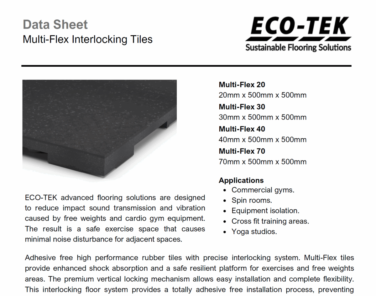 This makes ECO-TEK flooring ideal for gyms located in residential developments, hotels, offices and leisure centres.